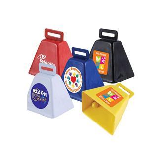 Low grade painted steel cow bells are a fun and loud way to show team/company spirit. Perfect for sporting events, parades, trophies, dog training, fundraising, cheerleading, achievement awards, weddings, and where sponsors / promoters want to make some noise.